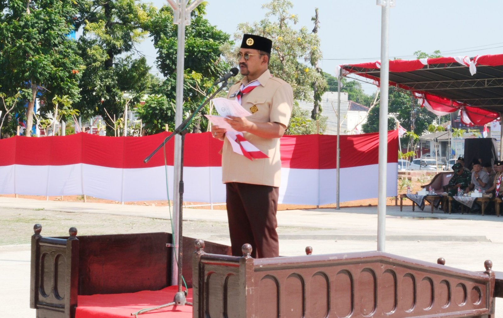 Turut hadir dalam upacara, jajaran Forkopimda setempat, Ketua TP. PKK Pemalang dr. Noor Faidzah Maenofie dan serta Ketua Kwarcab Pramuka Pemalang Sukarso.