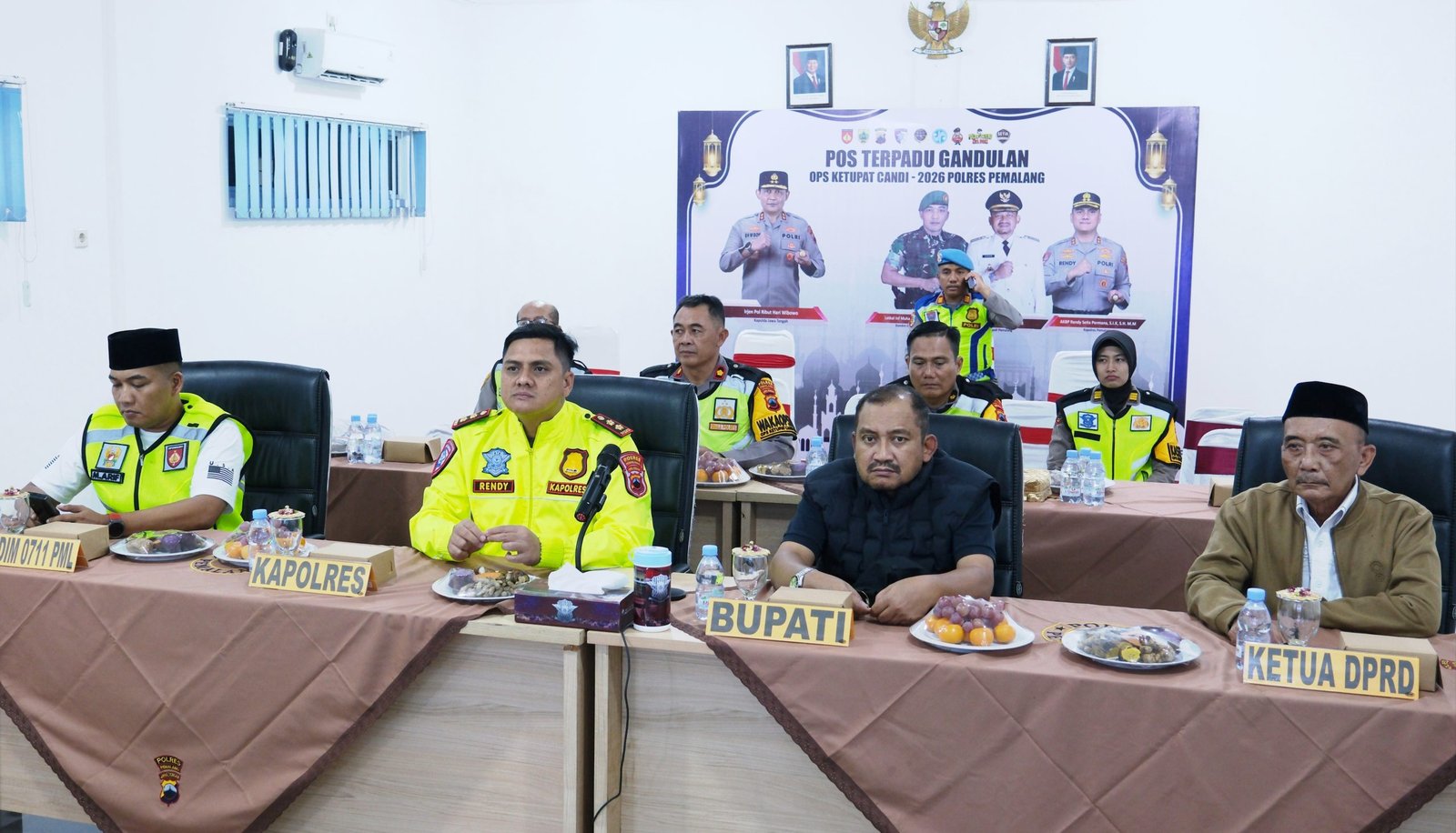 WARTA NASIONAL – Bupati Pemalang Anom Widiyantoro bersama Dandim 0711/Pemalang Muhammad Arif, Kapolres Pemalang AKBP Rendy Setia Permana dan Wakil Ketua DPRD Wardoyo mengikuti zoom meeting Monitoring Malam Takbiran 2026 di Pos Pengamanan Terpadu Gandulan, Jumat (20/3/2026).