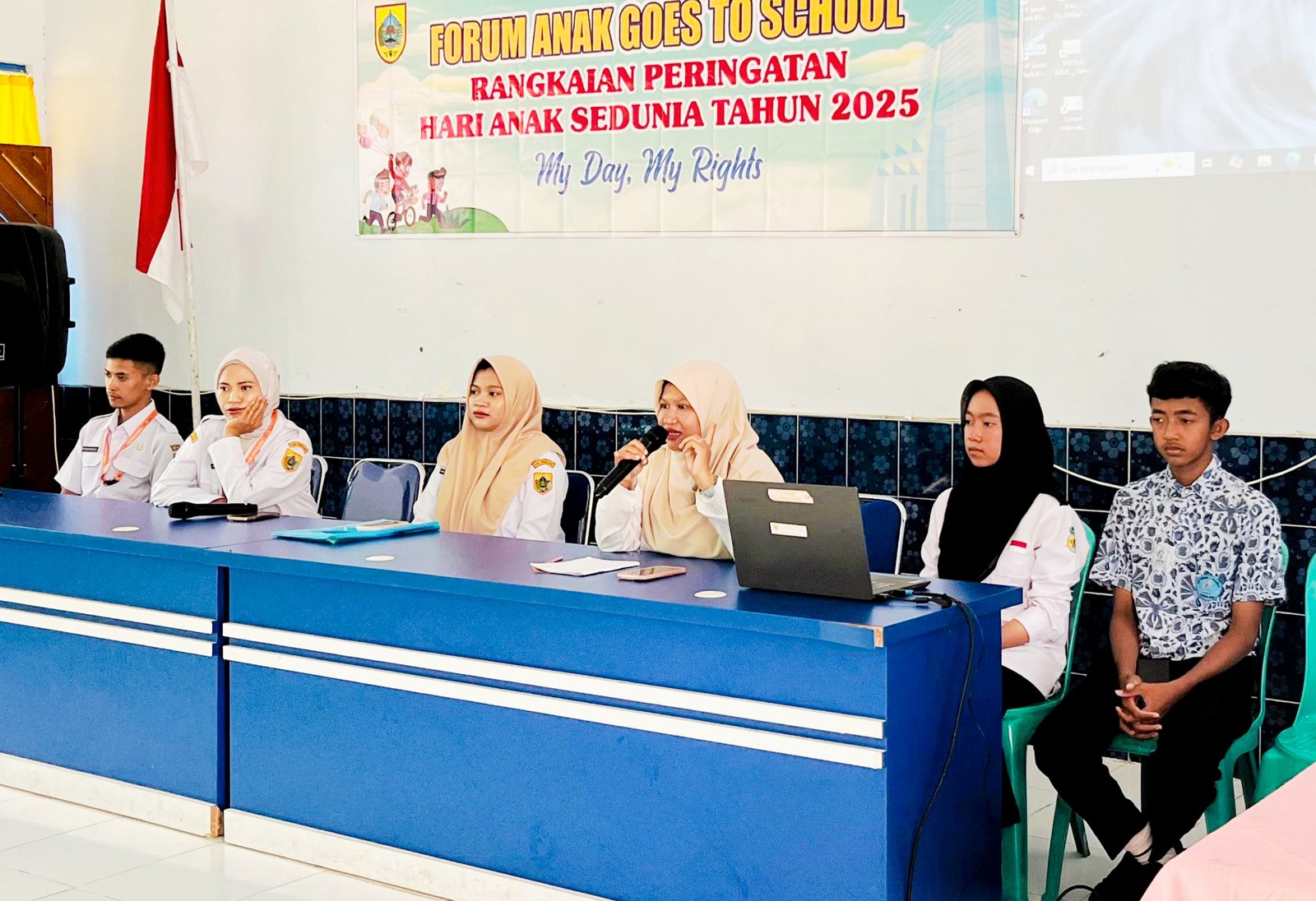 Acara diawali sambutan Wakil Kepala Sekolah SMP Negeri 1 Pulosari, Erita Listiani yang menekankan pentingnya pemenuhan hak anak dan lingkungan sekolah yang aman.